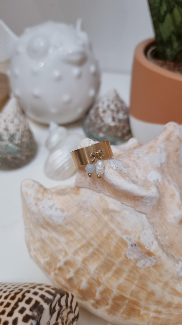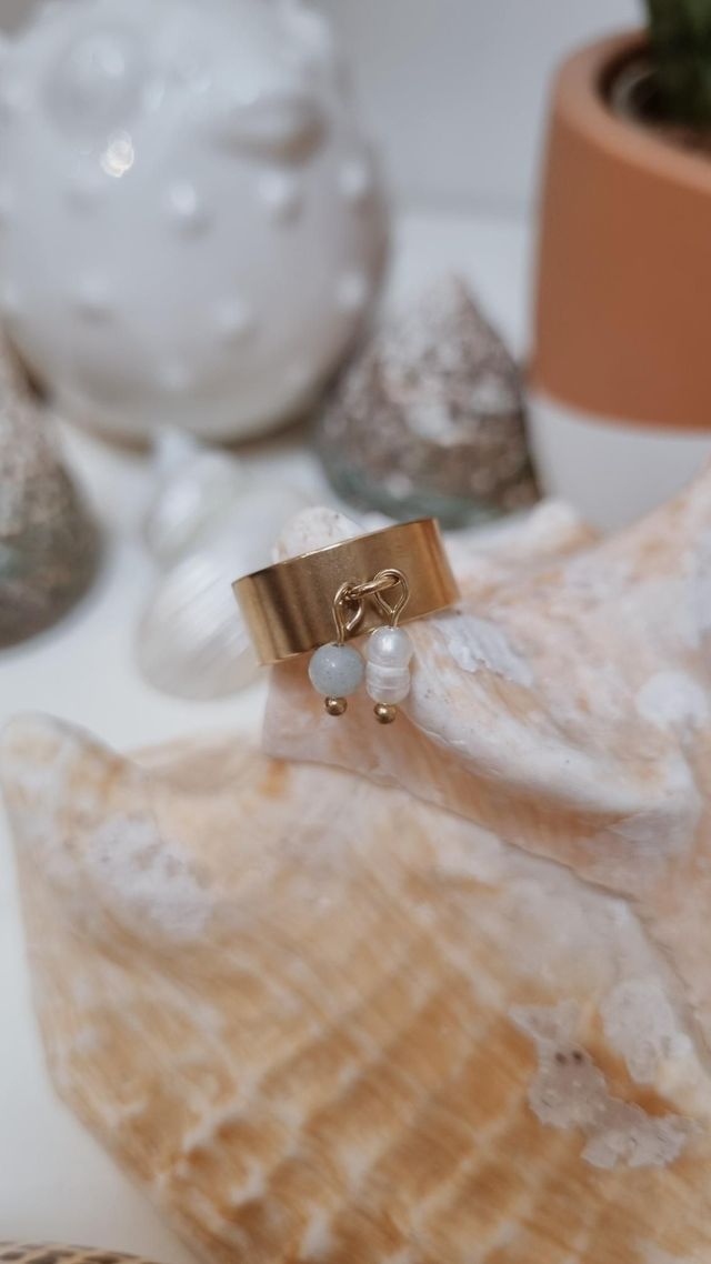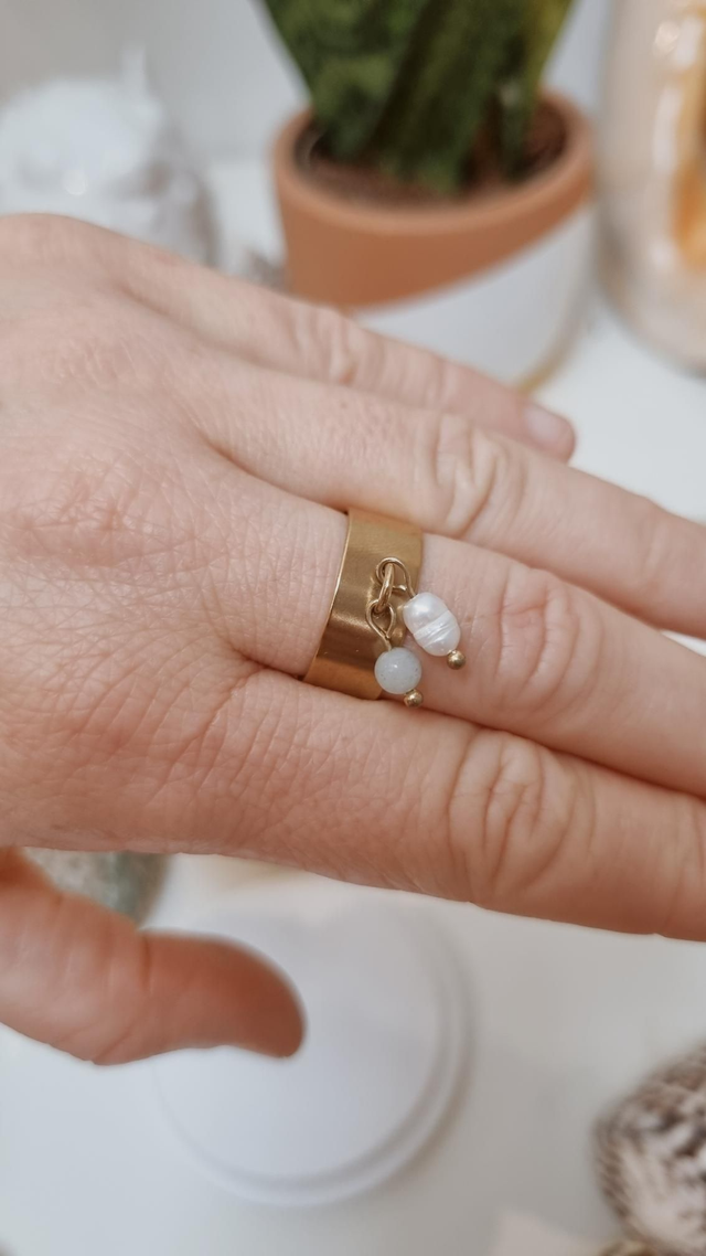 Cette bague est composée de perle d'eau douce et de pierre