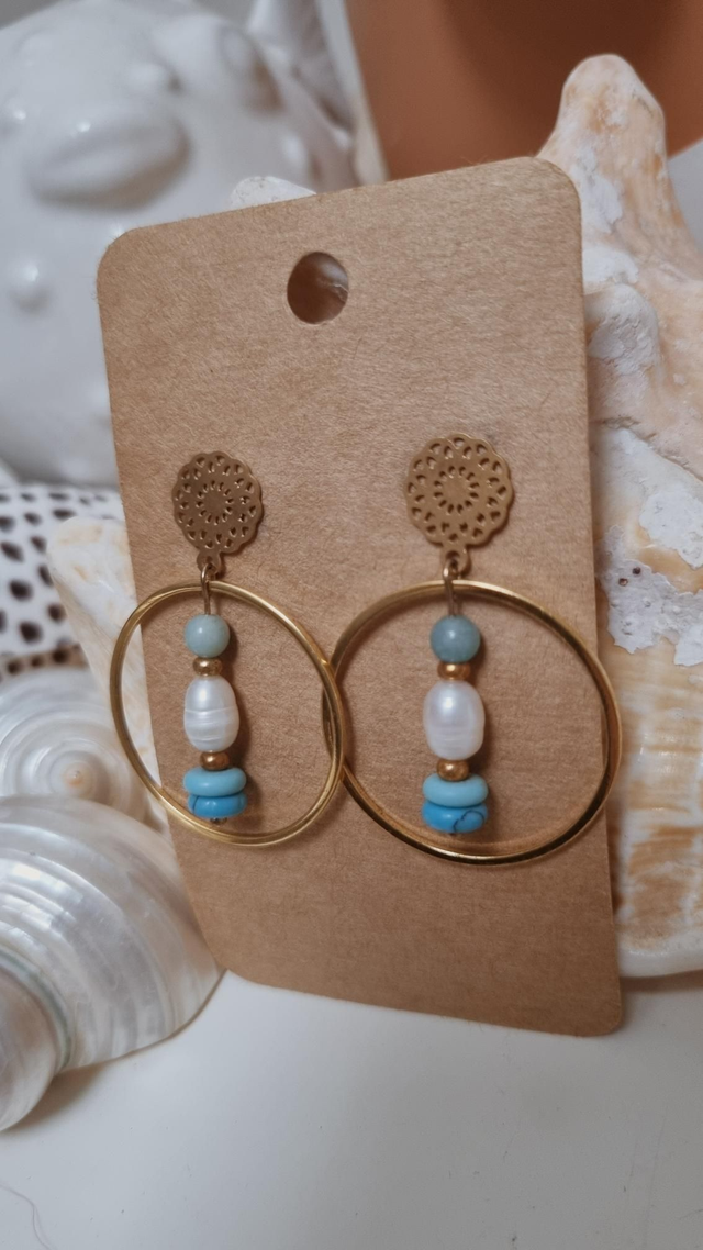 Cette paire est composée de perles d'eau douce et de pierre.