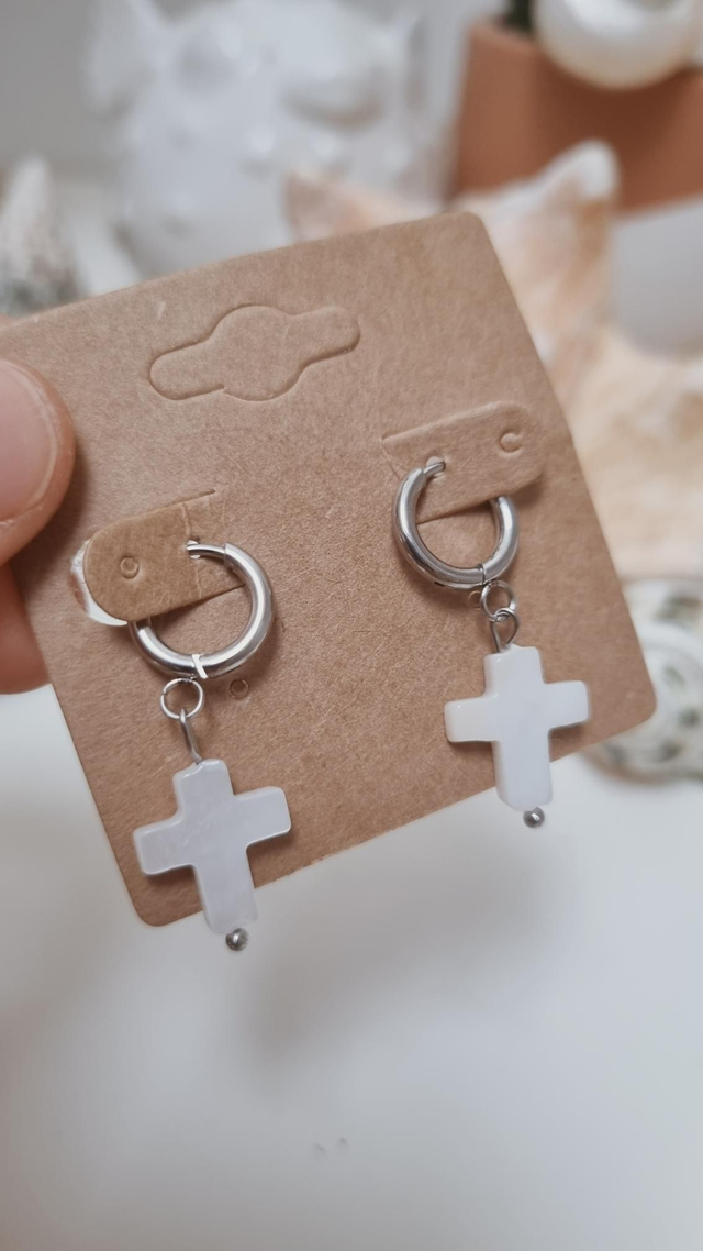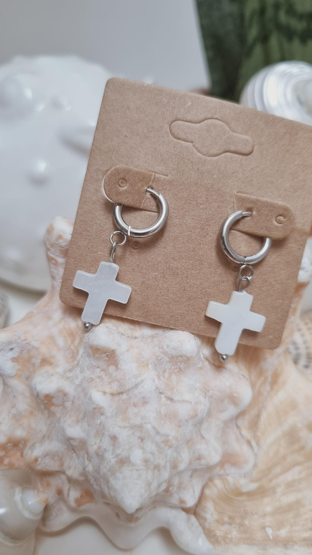 Boucles d'oreilles croix nacre