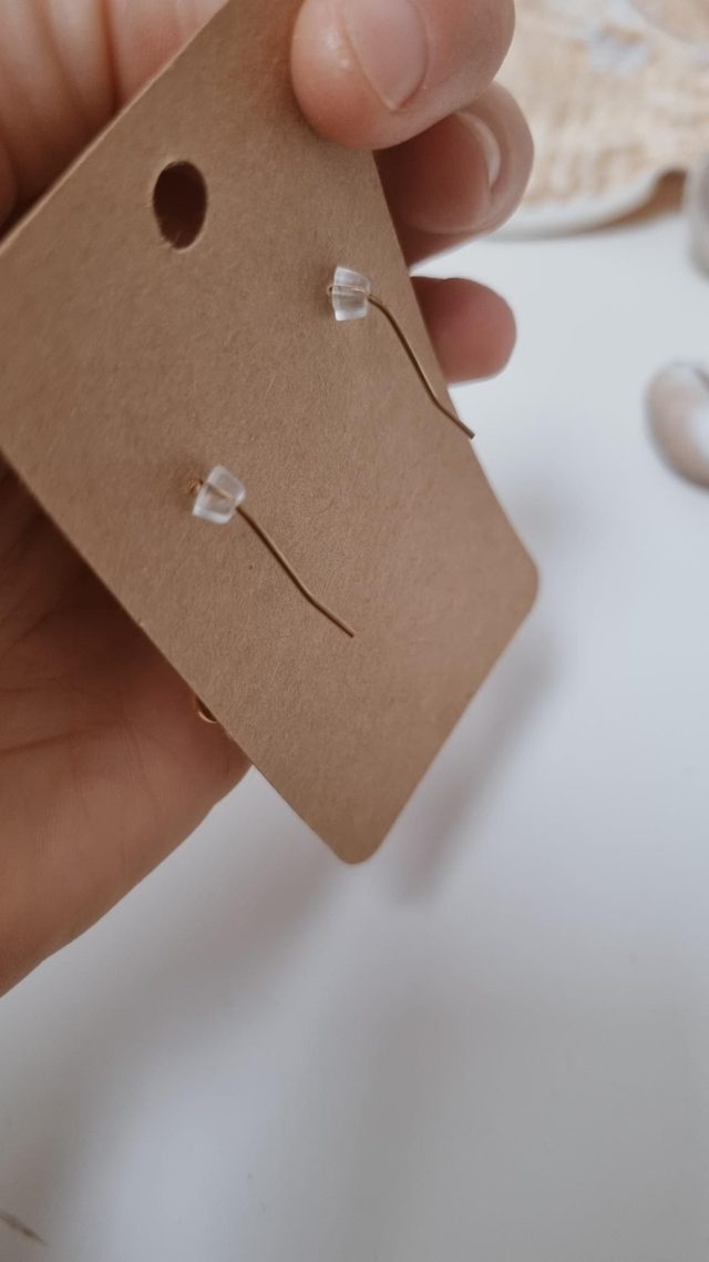 Cette paire est composée de perles d'eau douce et de fragments de coquillages.