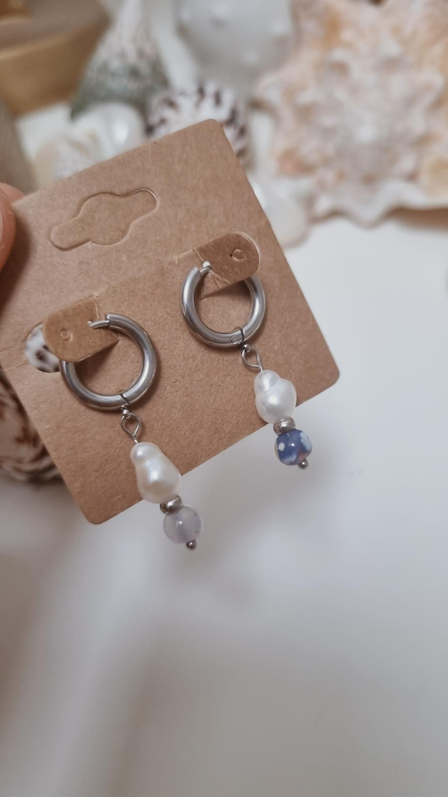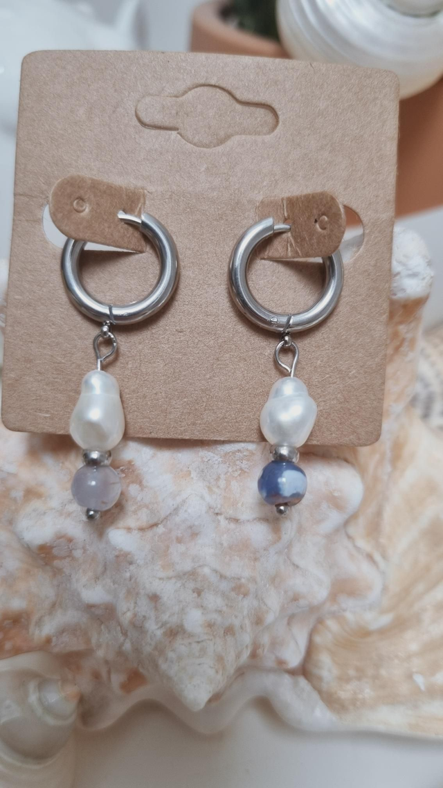 Cette paire est composée de pierre et de perles d'eau douce.