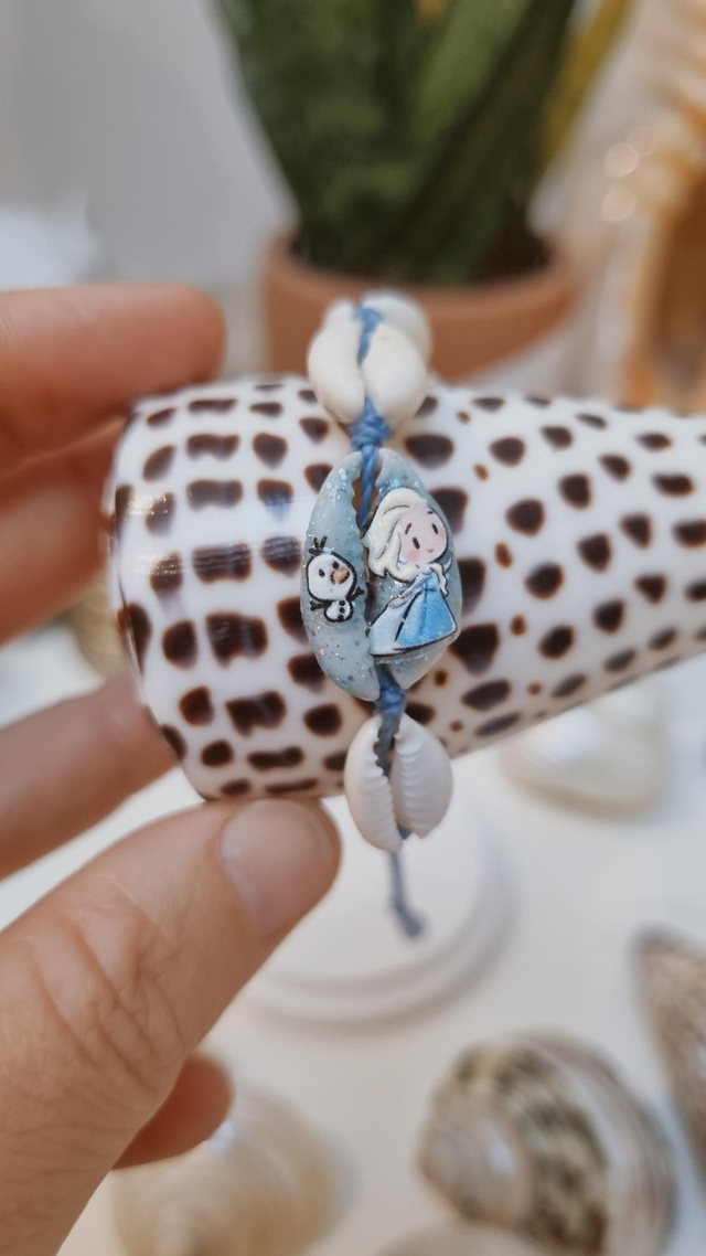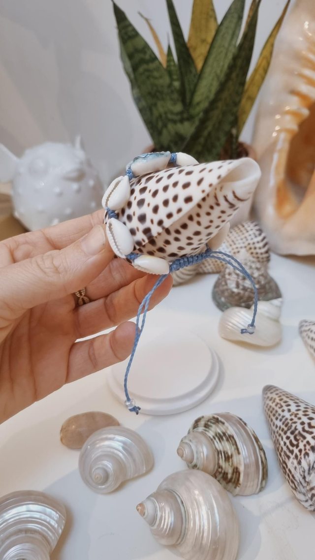 Chaque bracelet est composé de sept coquillages cauris, dont un coquillage central décoré.
