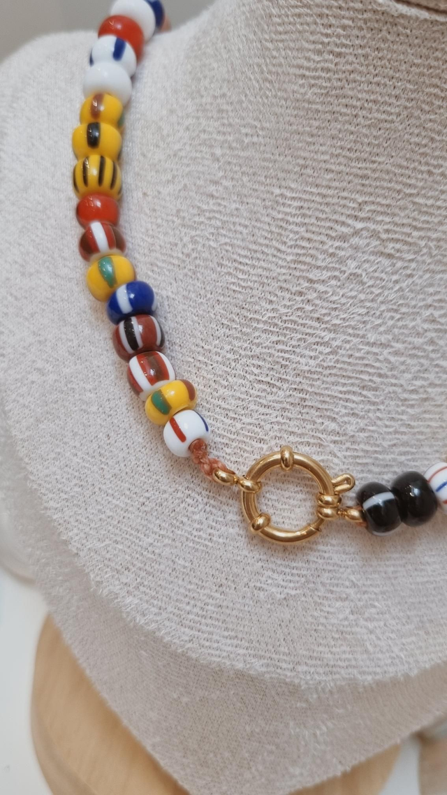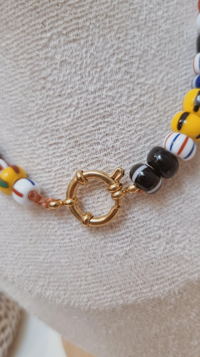 Les perles étant mélangées lors du montage, la répartition des couleurs peut varier : le collier reçu ne sera pas strictement identique à celui présenté en photo, tout en conservant le même esprit.