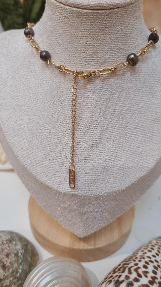 Ce collier est composé de perles d'eau douce.