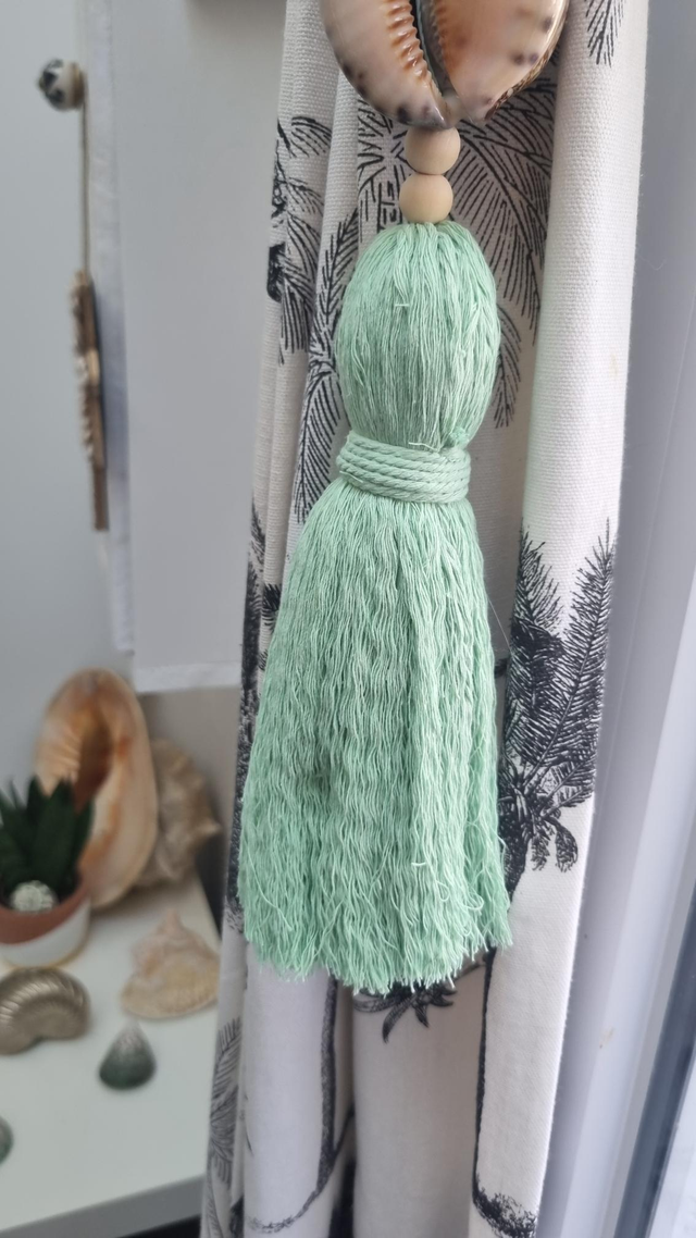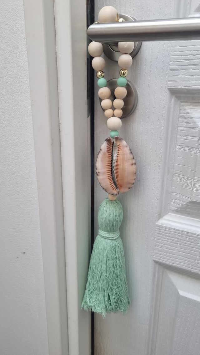 Embrasse décorative artisanale, à utiliser pour rideaux, portes ou en suspension murale.