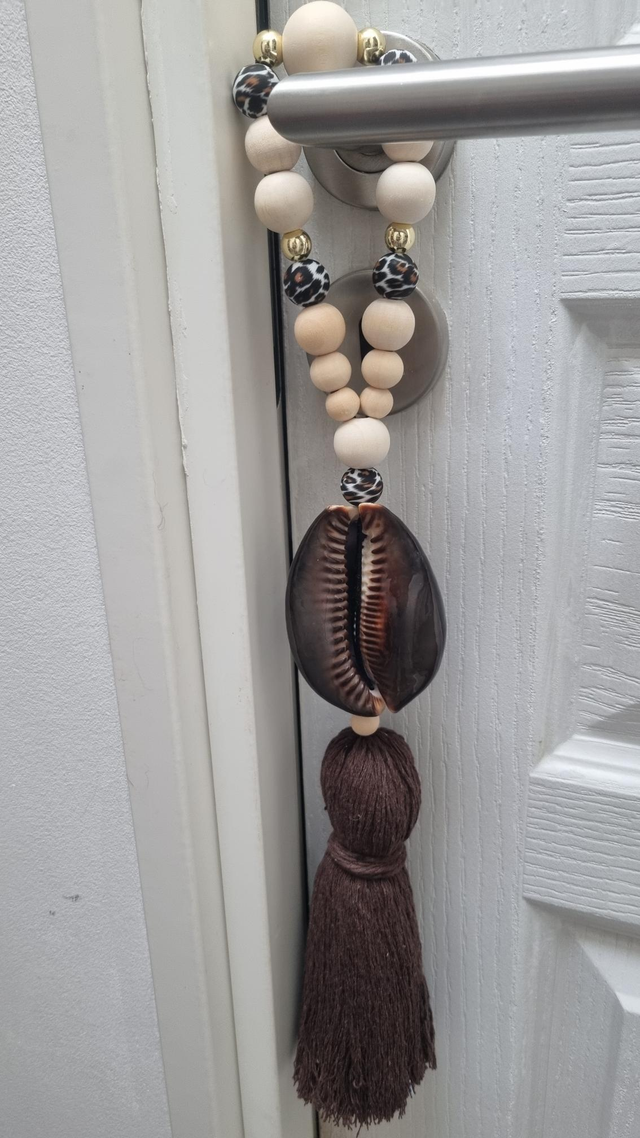 Embrasse décorative artisanale, à utiliser pour rideaux, portes ou en suspension murale.
