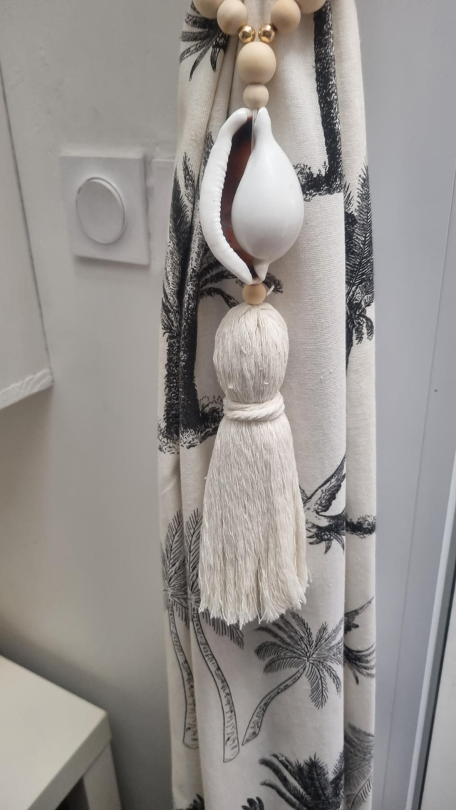 Embrasse décorative artisanale, à utiliser pour rideaux, portes ou en suspension murale.