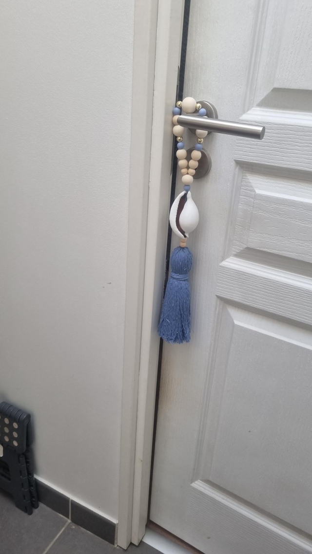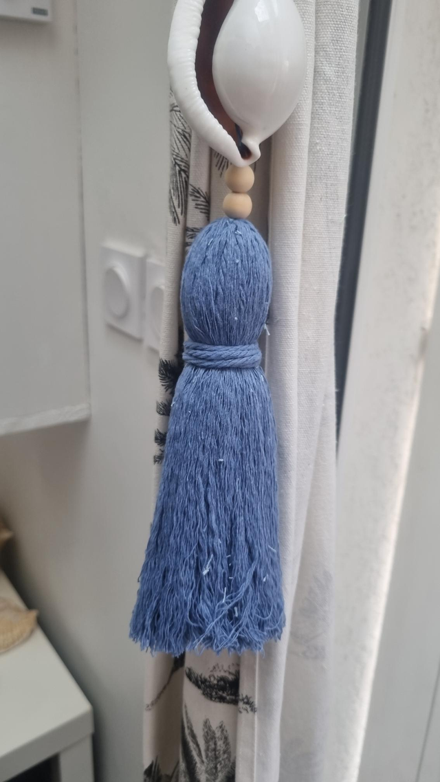 Embrasse décorative artisanale, à utiliser pour rideaux, portes ou en suspension murale.