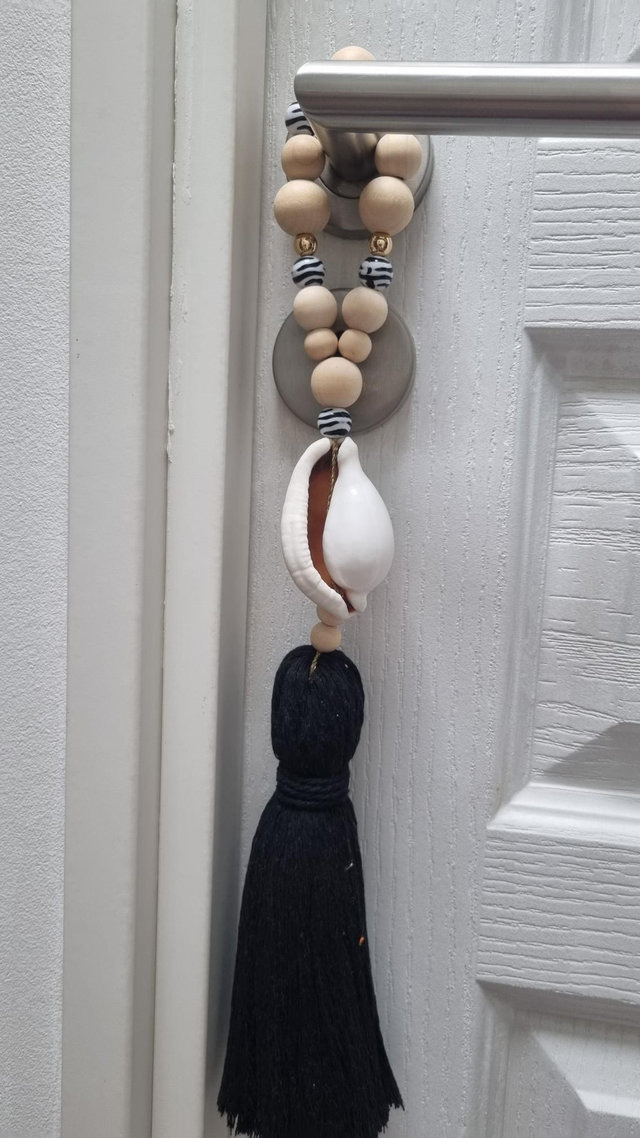Embrasse décorative artisanale, à utiliser pour rideaux, portes ou en suspension murale.