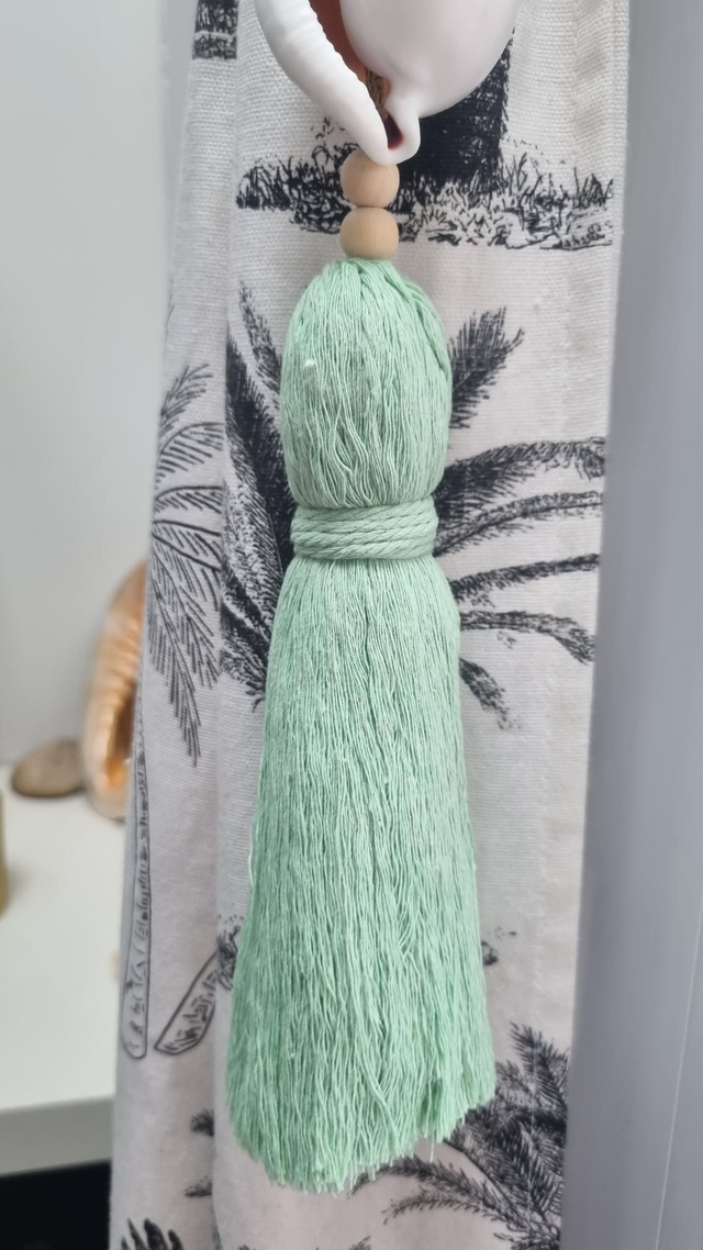 Embrasse décorative artisanale, à utiliser pour rideaux, portes ou en suspension murale.