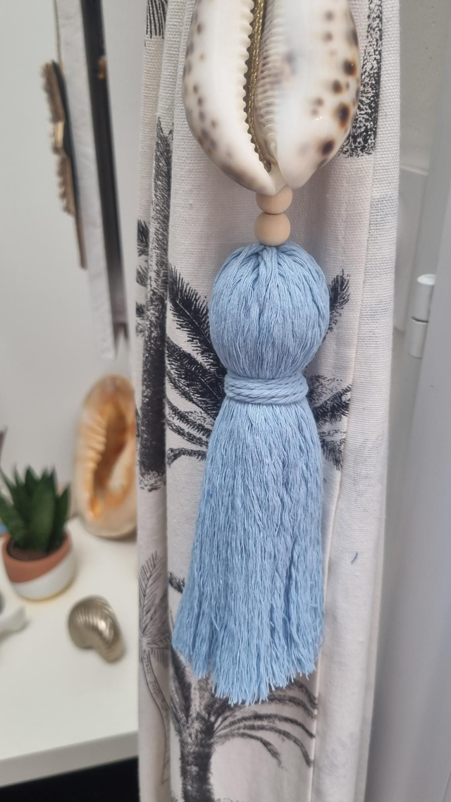 Embrasse décorative artisanale, à utiliser pour rideaux, portes ou en suspension murale.