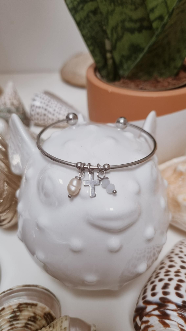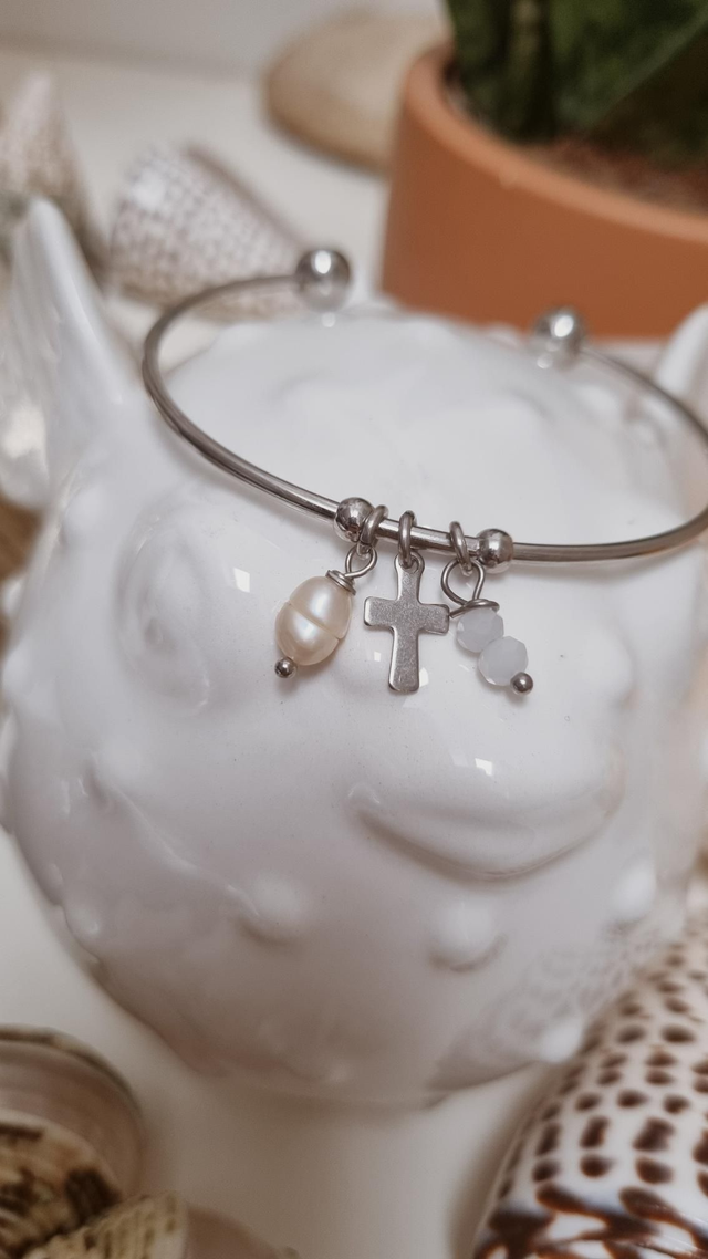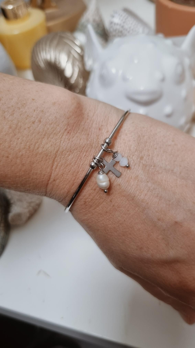 Jonc en acier inoxydable, réglable, qui s’adapte facilement à différentes tailles de poignet.