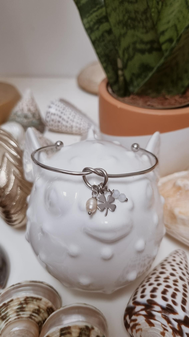 Jonc en acier inoxydable, réglable, qui s’adapte facilement à différentes tailles de poignet.
