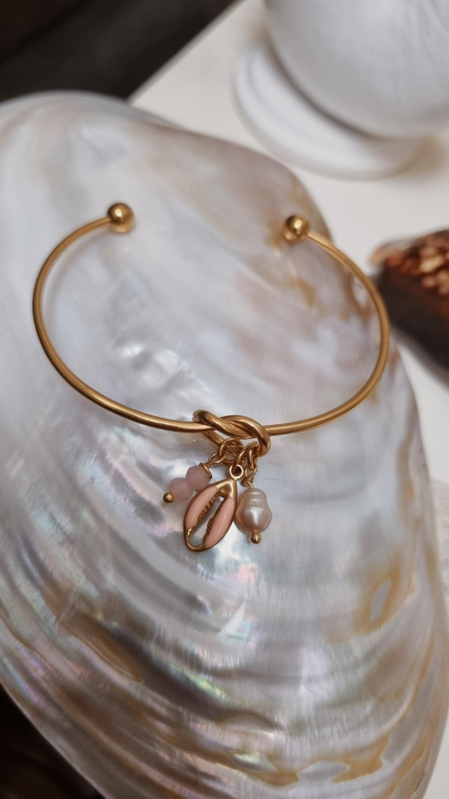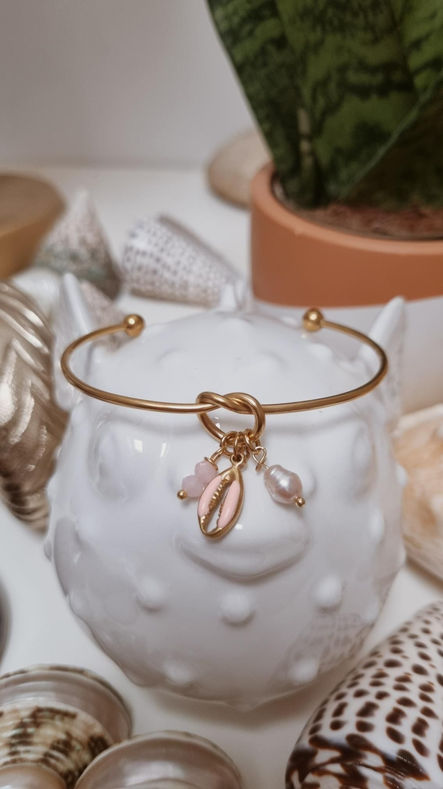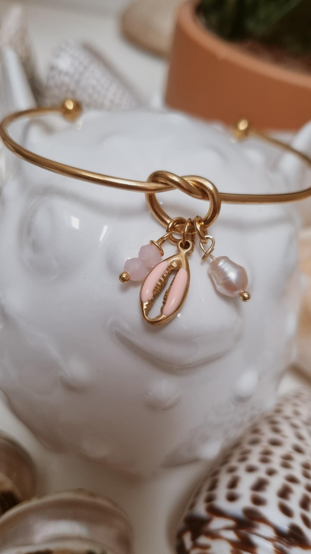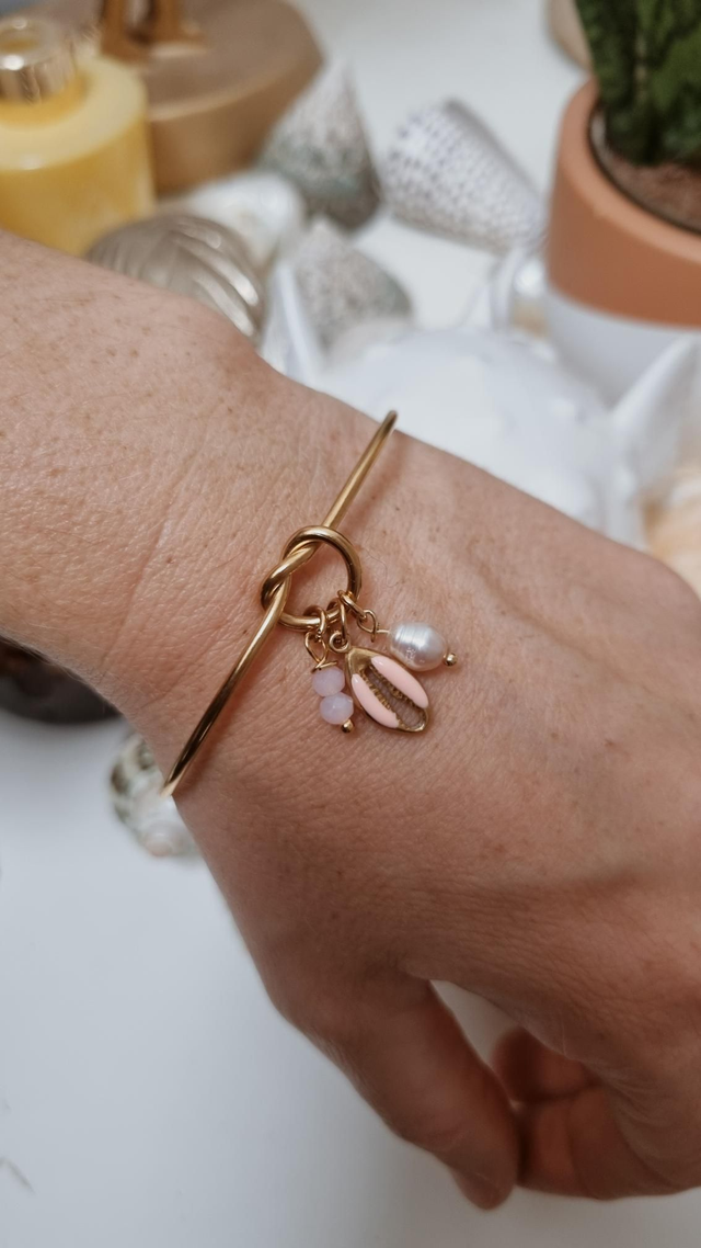 Jonc acier doré - cauri rose