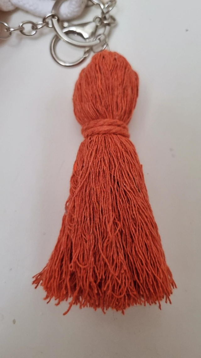 Chaque pièce est faite main et unique. Son mousqueton, doré ou argenté selon le modèle, permet de l’utiliser comme porte-clé, bijou de sac, grigri décoratif ou décoration de rétroviseur.